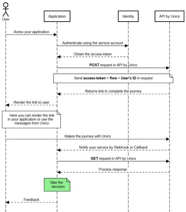 by Unico provides a ready-to-use infrastructure for identity verification via IDCloud. It simplifies integration by offering: